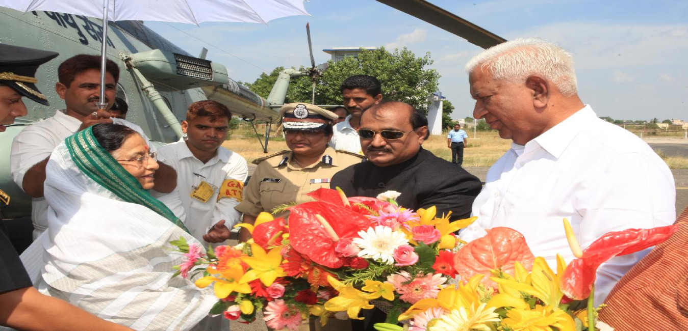 The President of India, Smt Pratibha Devisingh Patil before departure from Gandhinagar Raj Bhavan in Gujarat on Oct 02, 2009