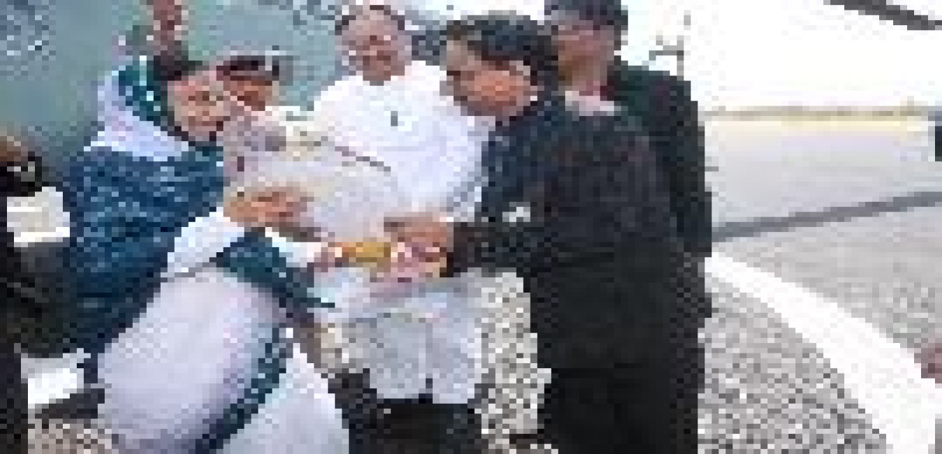 The President of India, Smt Pratibha Devisingh Patil being welcomed by the Development Commissioner, Shri P K Gupta at Diu Airport on Oct 03, 2009