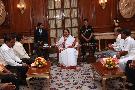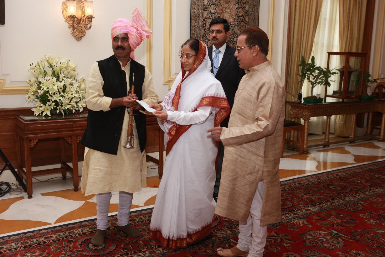 The President of India, Smt Pratibha Devisingh Patil receiving a 'Pankha' of Phool Walon Ki Sair, Organised by Anjuman Sair-e-Gul Faroshan at Rashtrapati Bhavan in New Delhi on Oct 07, 2009