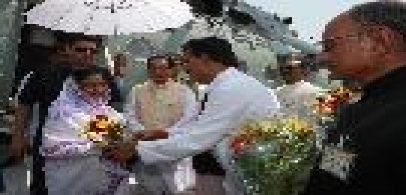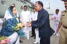 The President of India, Smt Pratibha Devisingh Patil being welcomed by the Chief Minister of Gujarat Shri Narendra Modi at Jamnagar Airport in Gujarat on Oct 02, 2009