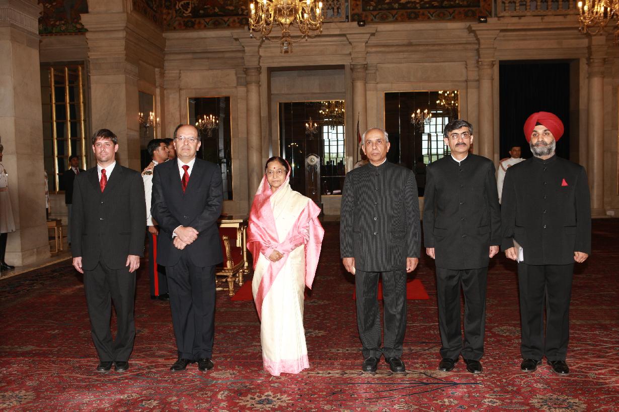 The Ambassador-Designate of Peru to India, HE Mr Javier Manuel Paulinich Velarde presenting his credential to the President of India, Smt Pratibha Devisingh Patil at Rashtrapati Bhavan in New Delhi on Sep 24, 2009