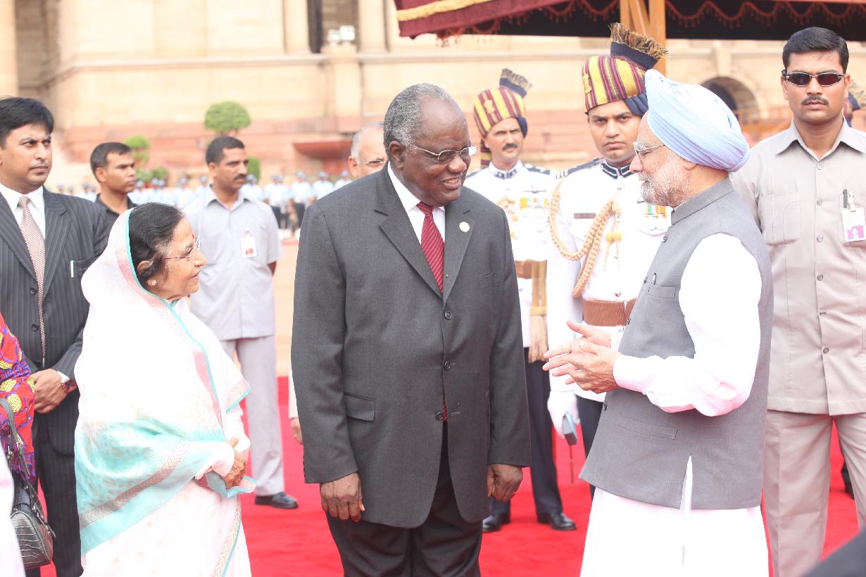 The President of India, Smt Pratibha Devisingh Patil at the Ceremonial Reception of the President of the Republic of Namibia, HE Mr Hifikepunye Pohamba and Mrs Penehupifo Pohamba at the Forecourt of Rashtrapati Bhavan in New Delhi on Aug 31, 2009
