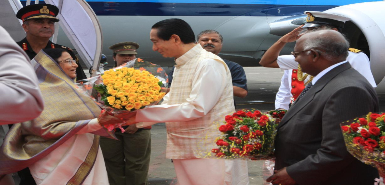 The President of India, Smt Pratibha Devisingh Patil being welcomed by the Governor of Maharashtra, Shri S C Jamir and Chief Minister of Maharashtra, Shri Ashok Chavan at Mumbai Airport in Maharashtra on June 27, 2009