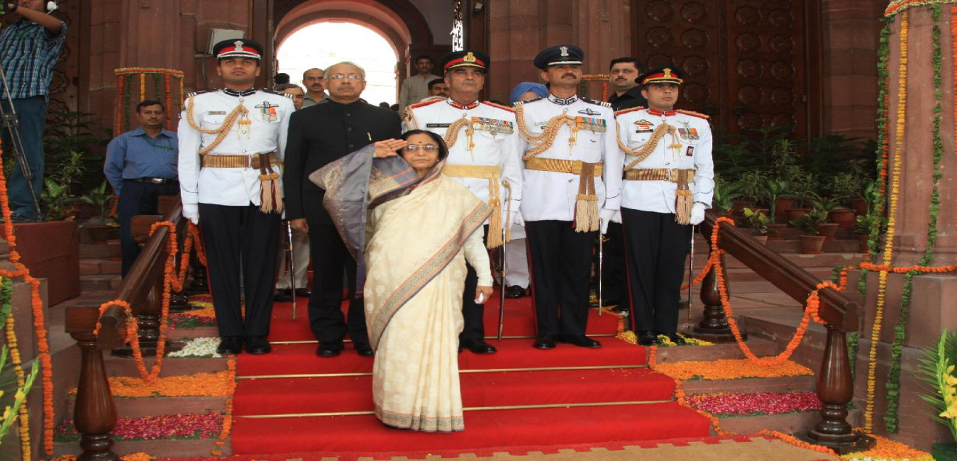 The President of India, Smt Pratibha Devisingh Patil being led in a Ceremonial Procession to the Central Hall of the Parliament House to address the Joint Session of the Parliament at Parliament House in New Delhi on June 4, 2009