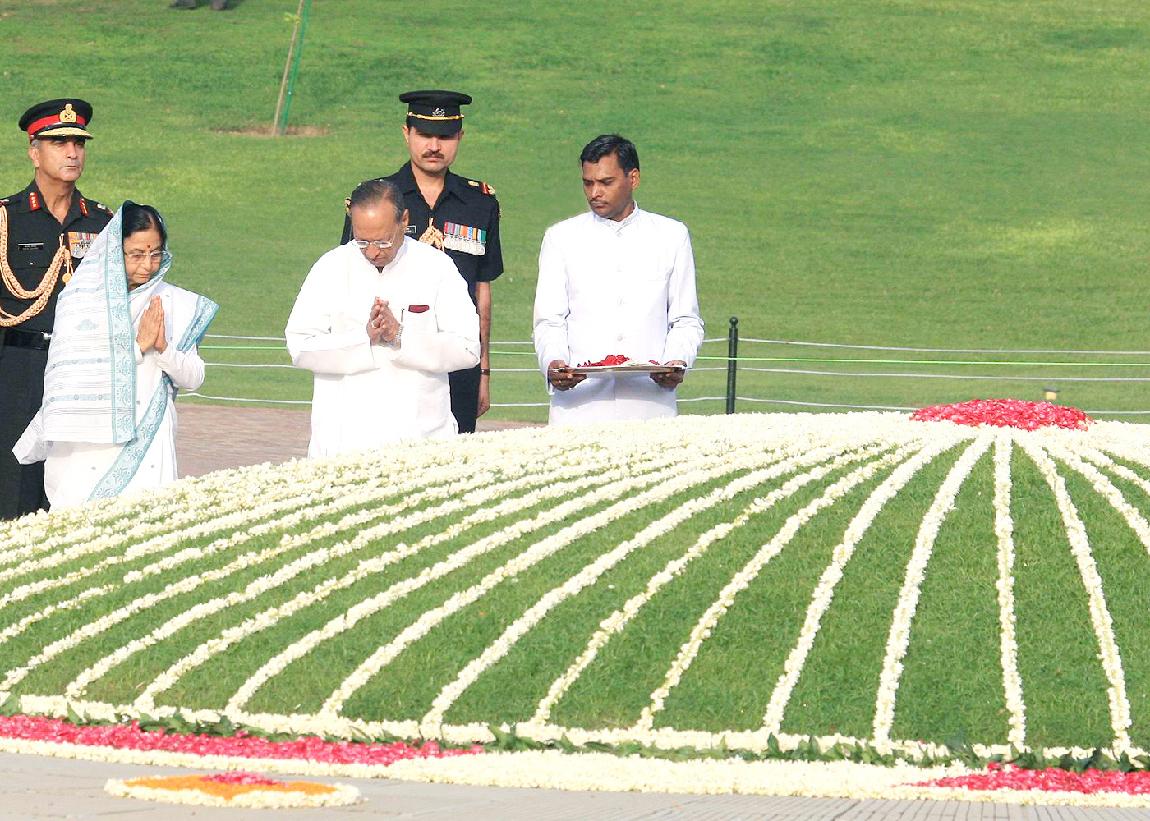 The President of India, Smt Pratibha Devisingh Patil paying homage at the Samadhi of the Prime Minister of India, Late Pandit Jawaharlal Nehru on his 45th Death Anniversary at Shanti Van in New Delhi on May 27, 2008