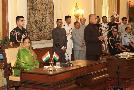 The President of India, Smt Pratibha Devisingh Patil administering the oath of Protem Speaker to Shri Manikrao Gavit at a Swearing-in-Ceremony at Rashtrapati Bhavan in New Delhi on June 1, 2009