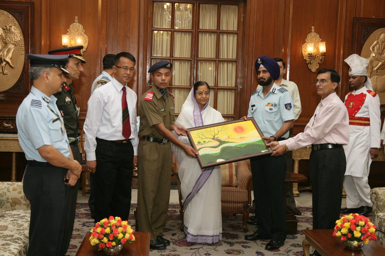 The President of India, Smt Pratibha Devisingh Patil posing for a Group Photograph with Students of Sainik School Imphal at Rashtrapati Bhavan in New Delhi on June 24, 2009