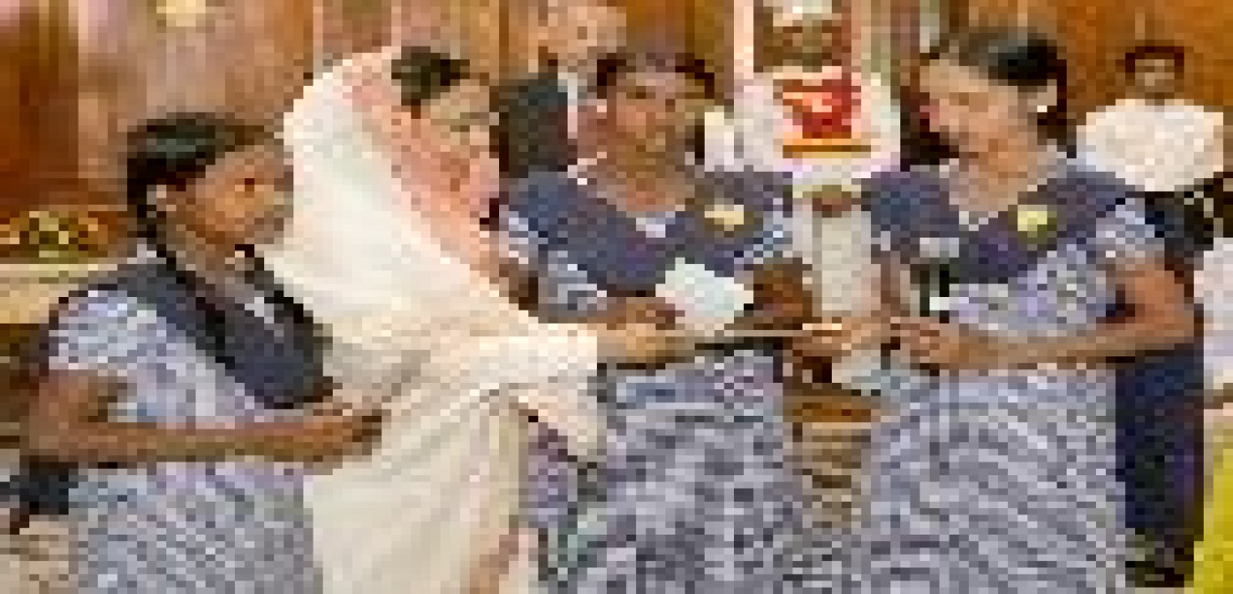 The President of India, Smt Pratibha Devisingh Patil interacting with Rekha Kalindi, Afsana Khatun and Sunita Mahato, girls who Successfully Resisted Child Marriage in Purulia District of West Bengal, the Girls were Specially Invited by the President for Appreciation of their Courage at Rashtrapati Bhavan in New Delhi on May 14, 2009
