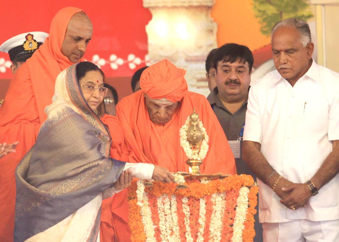 The President of India, Smt Pratibha Devisingh Patil inaugurating the Girls Hostel Building at the JSS Medical College by Pressing the Button at Suttur in Karnataka on May 09, 2009