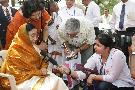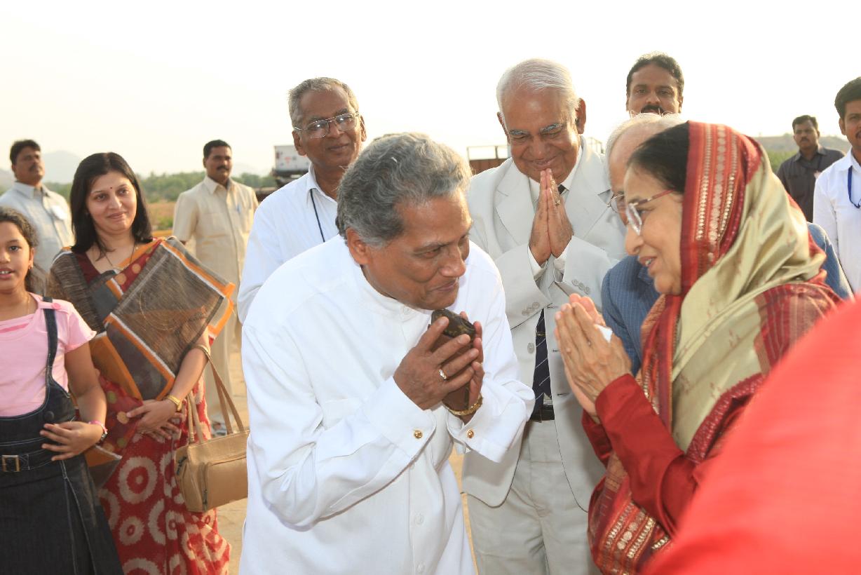The President of India, Smt Pratibha Devisingh Patil interacting with Darshanam of his Holiness Sri Sathya Sai Baba at Puttaparthi in Andhra Pradesh on May 07, 2009
