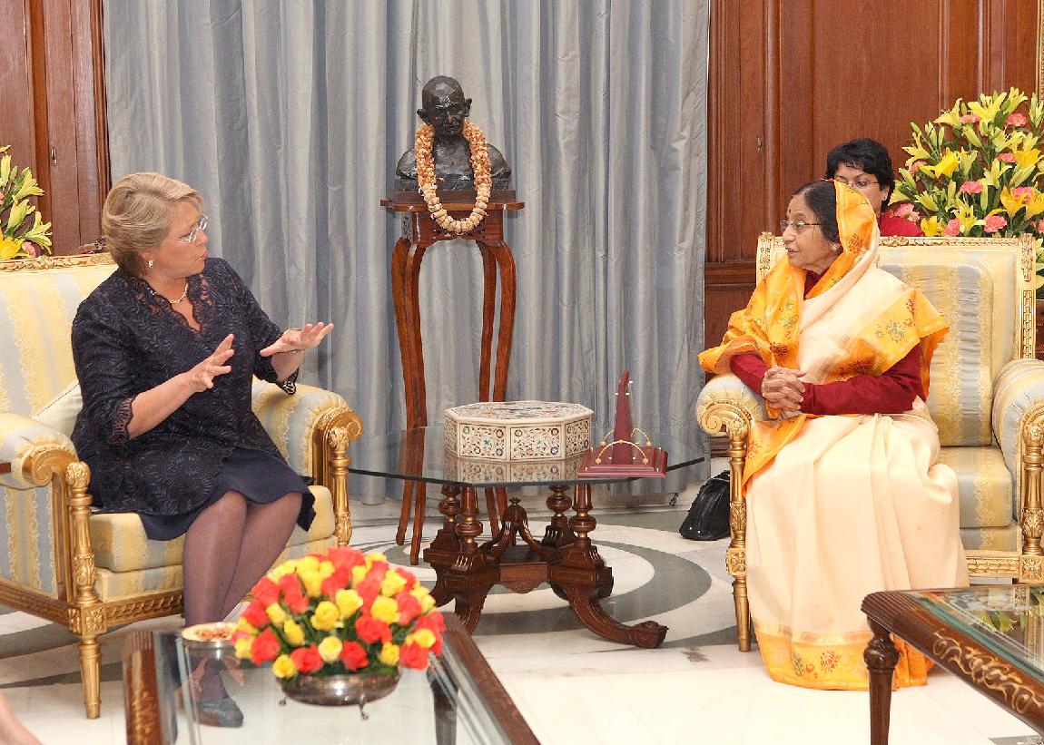 The President of Republic of Chile, Dr Michelle Bachelet calling on the President of India, Smt Pratibha Devisingh Patil at Rashtrapati Bhavan in New Delhi on March 17, 2009