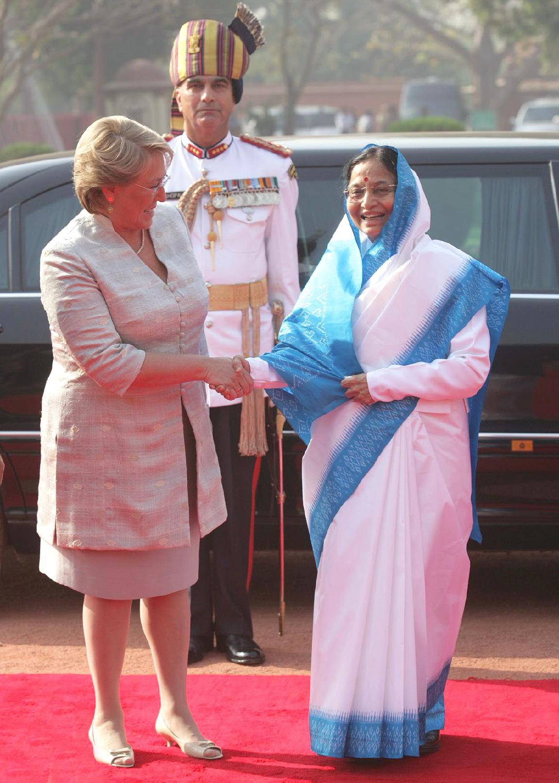 The President of India, Smt Pratibha Devisingh Patil at the Ceremonial Reception of the President of Republic of Chile, Dr Michelle Bachelet at Rashtrapati Bhavan in New Delhi on March 17, 2009