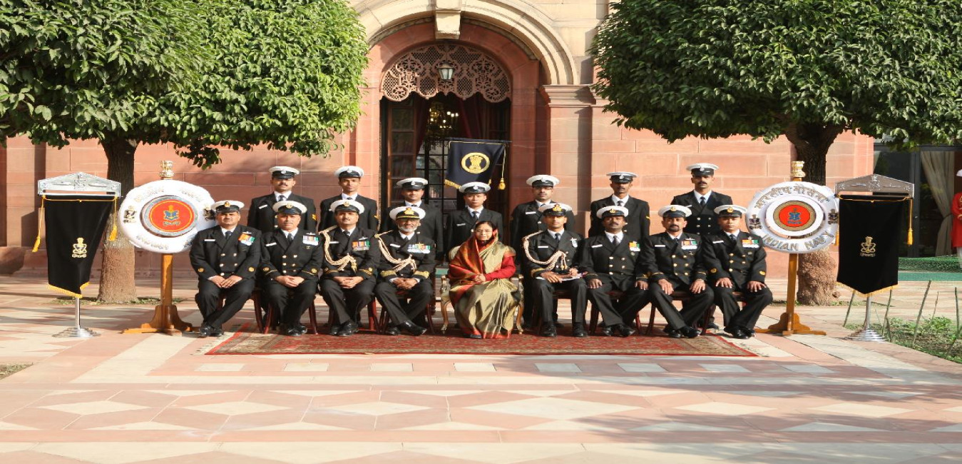 The President of India, Smt Pratibha Devisingh Patil posing for a Group Photograph with Navy Staff at Rashtrapati Bhavan in New Delhi on Dec 04, 2008