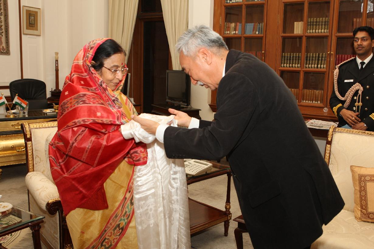 The President of India, Smt Pratibha Devisingh Patil at the Farewell calling by the Ambassador of Bhutan to India, HE Mr Dago Tshering at Rashtrapati Bhavan in New Delhi on Dec 15, 2008