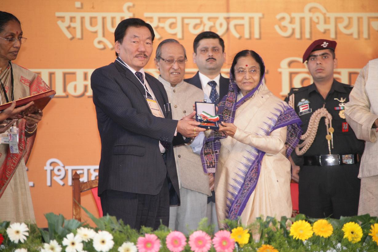 The President of India, Smt Pratibha Devisingh Patil presenting the Nirmal Gram Puraskar at Pune in Maharashtra on Dec 08, 2008