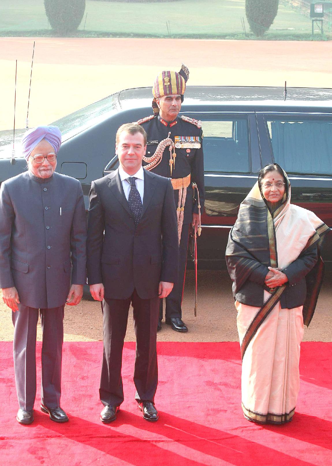 The President of India, Smt Pratibha Devisingh Patil at the Ceremonial Reception in Honour of the President of Russian Federation, HE MR Dmitry A Medvedev at Forecourt of Rashtrapati Bhavan in New Delhi on Dec 05, 2008