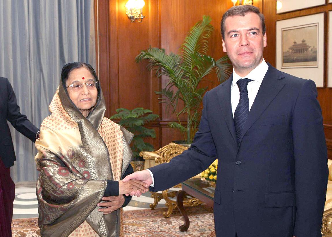 The President of the Russian Federation, HE MR Dmitry A Medvedev calling on the President of India, Smt Pratibha Devisingh Patil at Rashtrapati Bhavan in New Delhi on Dec 05, 2008