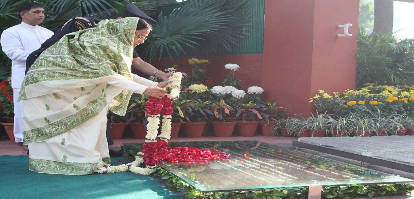 The President of India, Smt Pratibha Devisingh Patil paying tributes at the Samadhi of the Former Prime Minister of India, Late Smt Indira Gandhi at Akbar Road in New Delhi on Nov 19, 2008