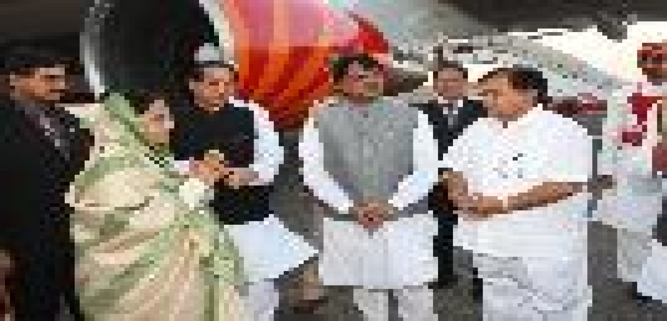 The President of India, Smt Pratibha Devisingh Patil being welcomed by the Governor of Maharashtra, Shri S C Jamir and Chief Minister of Maharashtra, Shri Vilasrao Deshmukh at Mumbai Airport in Maharashtra on Dec 01, 2008