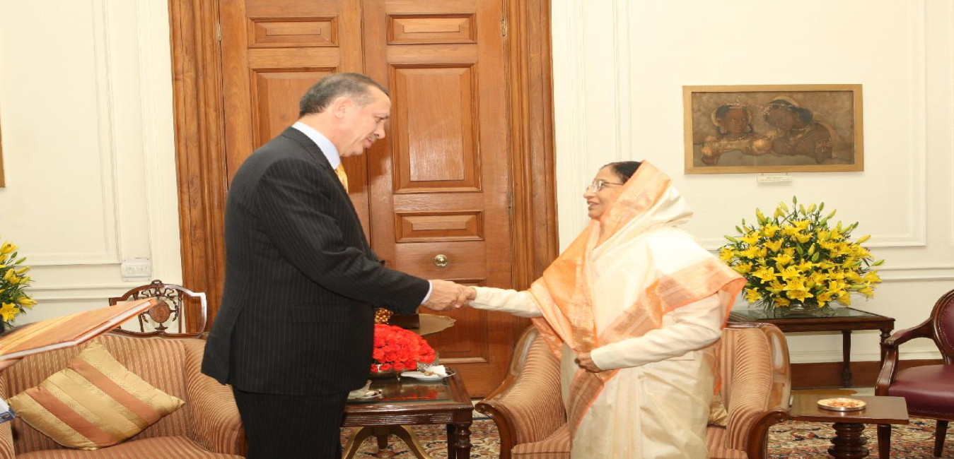 The President of India, Smt Pratibha Devisingh Patil interacting with the Prime Minister of Turkey, HE Mr Recep Tayyip Erdogan at Rashtrapati Bhavan in New Delhi on Nov 21, 2008