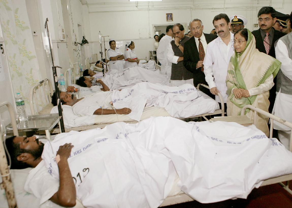 The President of India, Smt Pratibha Devisingh Patil consoling a Victim of the Mumbai Terrorist Attack during her Visit the J J Hospital at Mumbai in Maharashtra on Dec 01, 2008