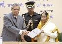 The President of India, Smt Pratibha Devisingh Patil presenting the Jawaharlal Nehru Award for International Understanding to the President of the Arab Republic of Egypt, HE Mr Mohamed Hosny Mubarak at ITC Maurya Hotel in New Delhi on Nov 18, 2008