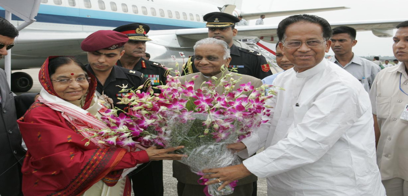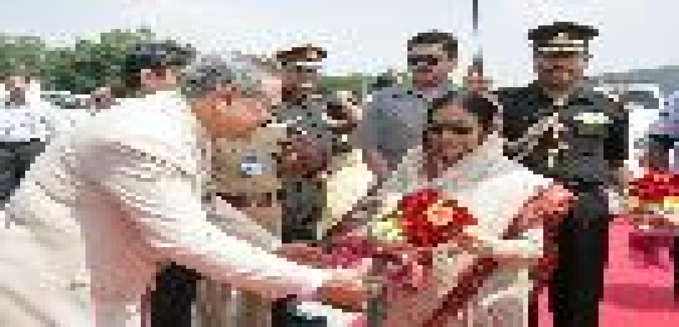 The President of India, Smt Pratibha Devisingh Patil being welcomed by the Governor of Assam, Shri Shiv Charan Mathur at Guwahati Airport in Assam on Oct 19, 2008