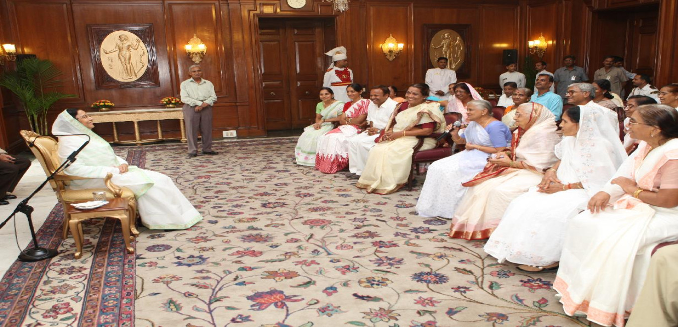 The President of India, Smt Pratibha Devisingh Patil interacting with Smt Ranjan Natwarlal Shah and others from Jalgaon at Rashtrapati Bhavan in New Delhi on Oct 06, 2008