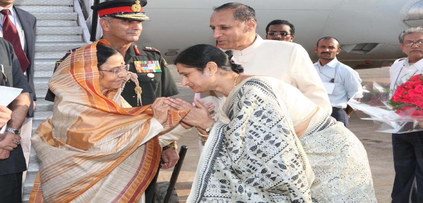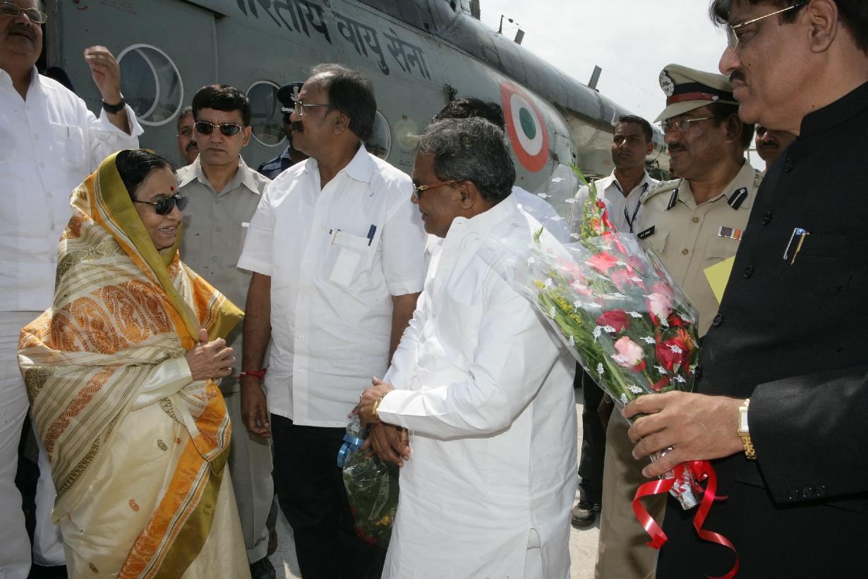 The President of India, Smt Pratibha Devisingh Patil during on her arrival at Chitrakoot Helipad in Madhya Pradesh on Sep 29, 2008