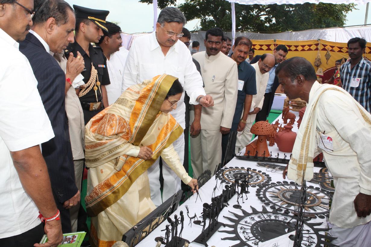 The President of India, Smt Pratibha Devisingh Patil during visit to Handicraft Mela at Chitrakoot in Madhya Pradesh on Sep 29, 2008
