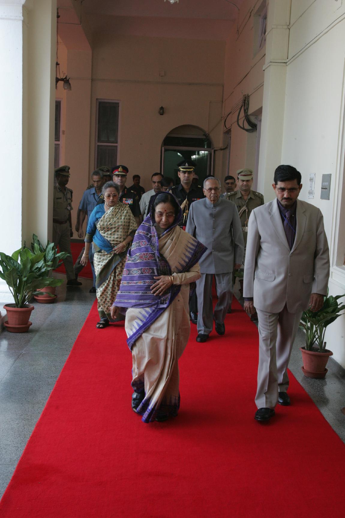 The President of India, Smt Pratibha Devisingh Patil before departure from Lucknow Raj Bhavan in Uttar Pradesh on Sep 24, 2008