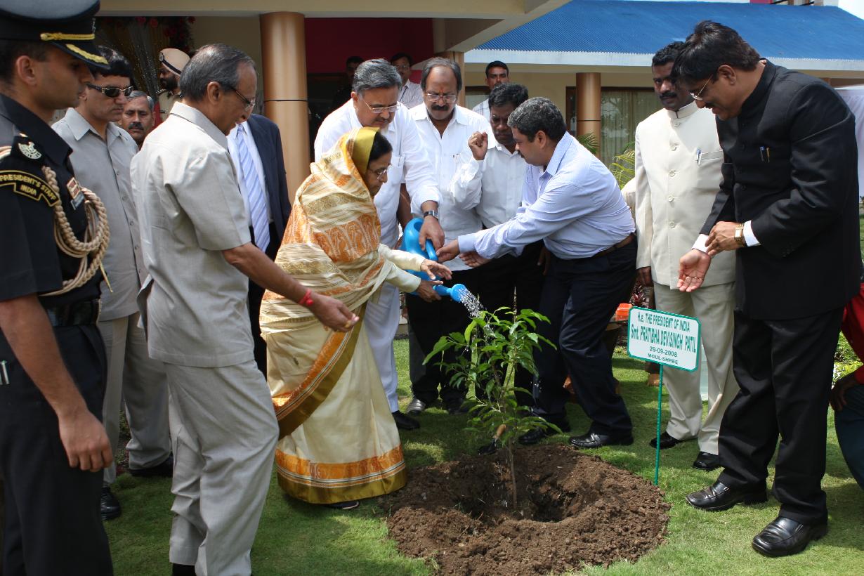 The President of India, Smt Pratibha Devisingh Patil planting a Tree at Circuit House of Chitrakoot in Madhya Pradesh on Sep 29, 2008