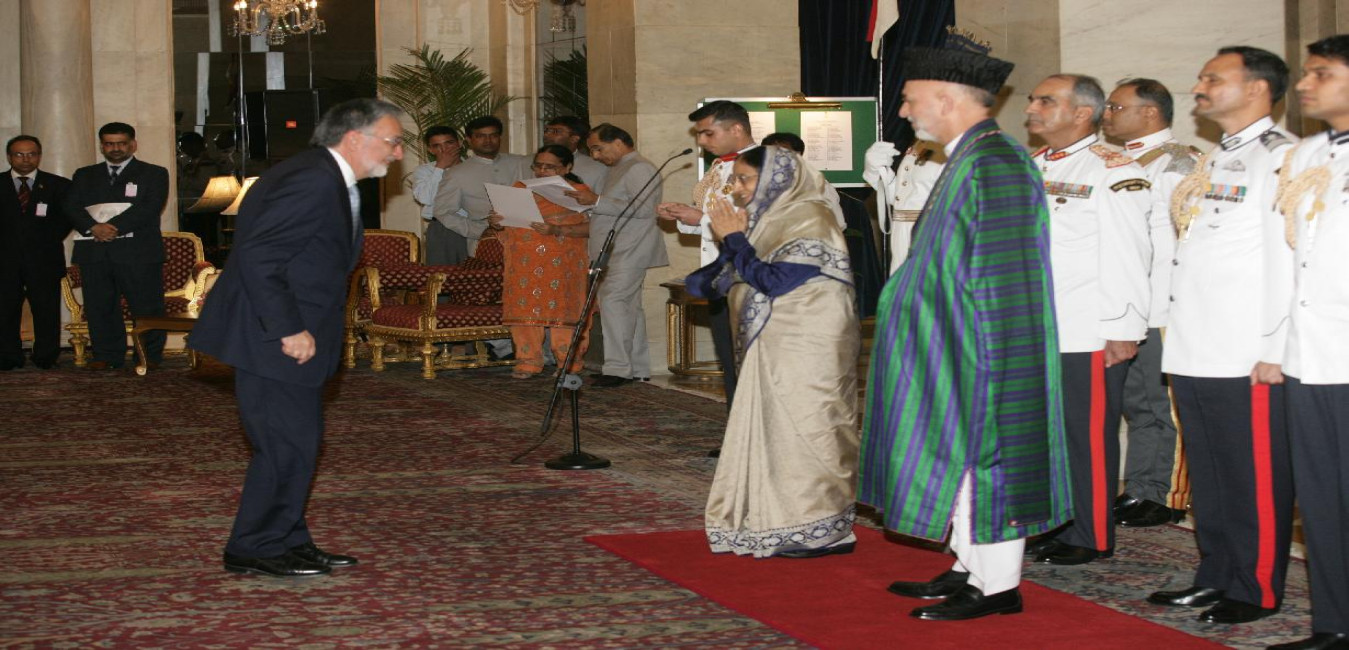 The President of Afghanistan, His Excellency Mr Hamid Karzai calling on the President of India, Smt Pratibha Devisingh Patil at Rashtrapati Bhavan in New Delhi on Aug 04, 2008