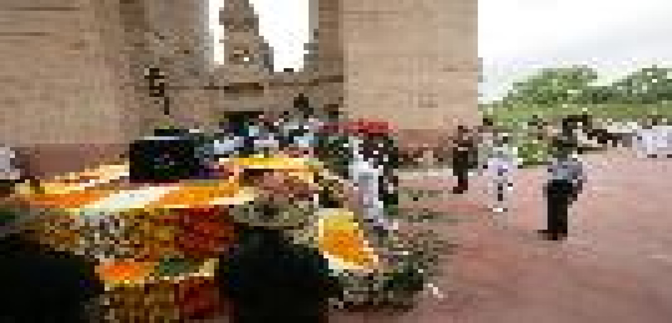 The President of India, Smt Pratibha Devisingh Patil paying her floral tributes to the Unknown Soldier at the Amar Jawan Jyoti on the occasion of India's 62nd Independence Day at India Gate in New Delhi on Aug 15, 2008