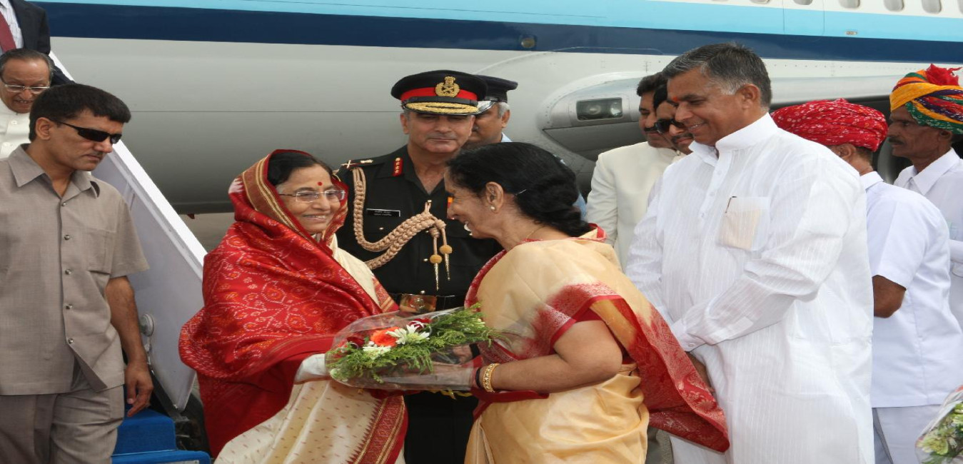 The President of India, Smt Pratibha Devisingh Patil arriving at Sanganer Airport in Rajasthan on June 21, 2008
