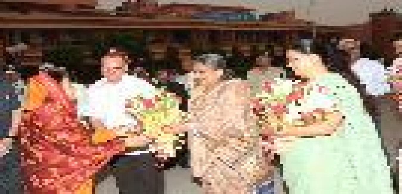 The President of India, Smt Pratibha Devisingh Patil felicitating a Group of war widows at Indrapura Village in Jhunjhunu District in Rajasthan on June 22, 2008