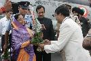 The President of India, Smt Pratibha Devisingh Patil being welcomed by the Governor of Maharashtra, Shri S C Jamir and Chief Minister of Maharashtra, Shri Vilasrao Deshmukh at Chhatrapati Shivaji International Airport of Mumbai in Maharashtra on June 26, 2008