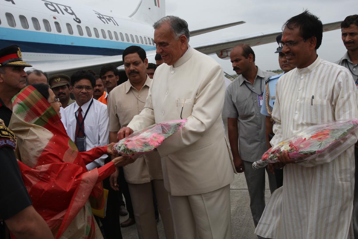 The President of India, Smt Pratibha Devisingh Patil arriving at Indore Airport in Madhya Pradesh on June 27, 2008