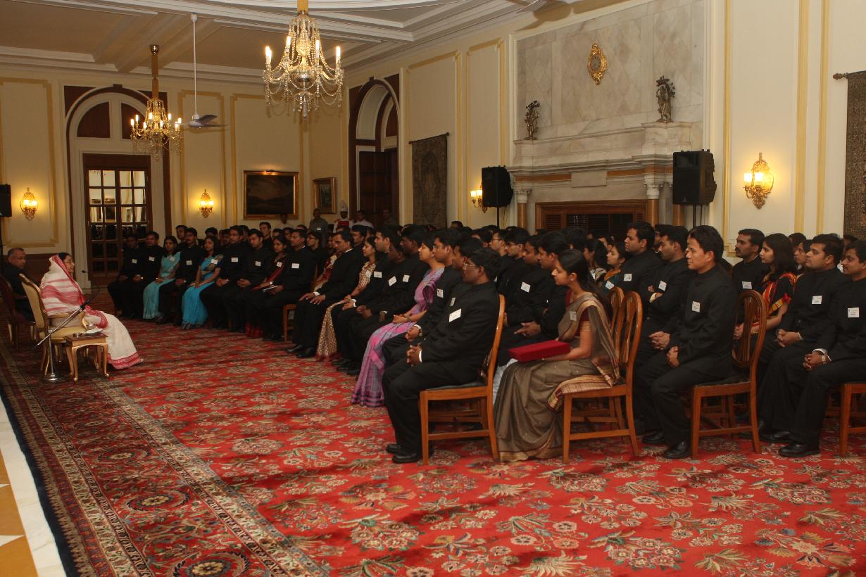 The President of India, Smt Pratibha Devisingh Patil interacting with the IFS Probationers of the IFS(Indian Forest Service) at Rashtrapati Bhavan in New Delhi on May 14, 2008