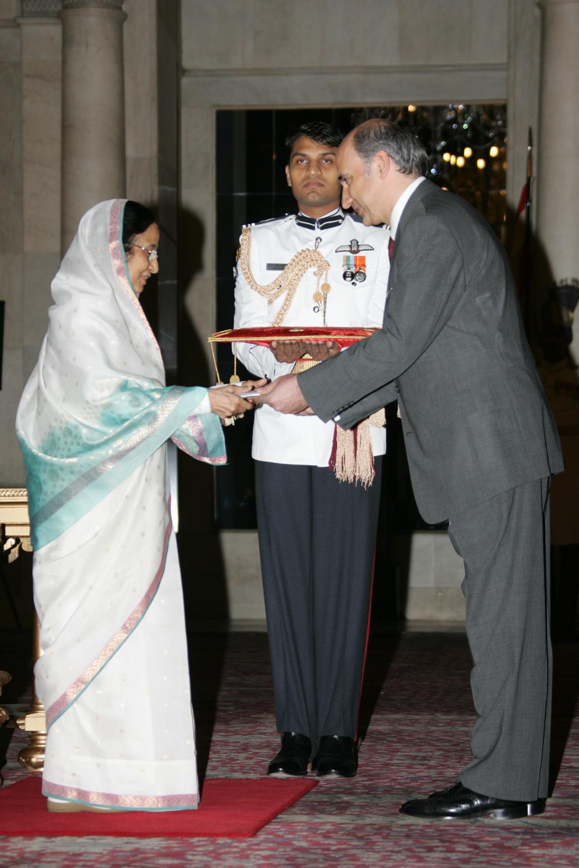 The Ambassador-Designate of Turkey to India, HE Mr Levent Bilman presenting his credentials to the President of India, Smt Pratibha Devisingh Patil at Rashtrapati Bhavan in New Delhi on May 16, 2008