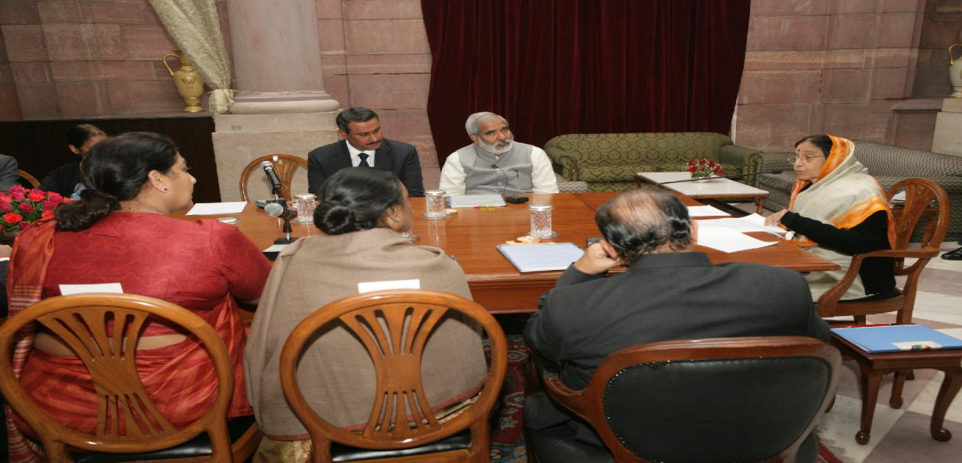 The President of India, Smt Pratibha Devisingh Patil interacting with the Ministers on Facets of Gender Equality Programme at Rashtrapati Bhavan in New Delhi on Feb 19, 2008