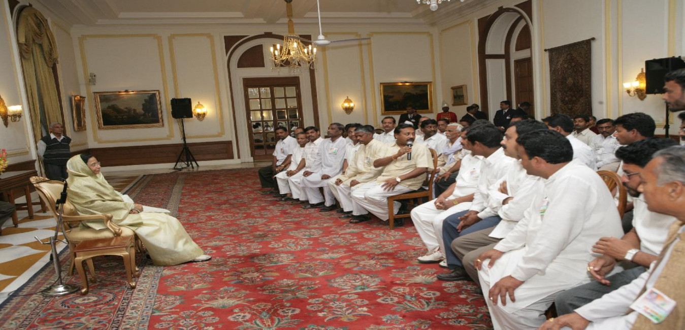 The President of India, Smt Pratibha Devisingh Patil interacting with Shri Ranjeet Deshmukh and others at Rashtrapati Bhavan in New Delhi on Feb 21, 2008