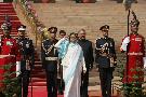The PBG presenting the National Salute to the President of India, Smt Pratibha Devisingh Patil at Rashtrapati Bhavan in New Delhi on Feb 25, 2008