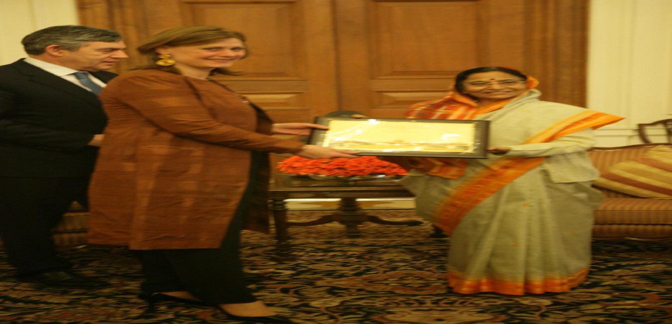 The President of India, Smt Pratibha Devisingh Patil interacting with Prime Minister of United Kingdom, HE Mr Gordon Brown at Rashtrapati Bhavan in New Delhi on Jan 21, 2008