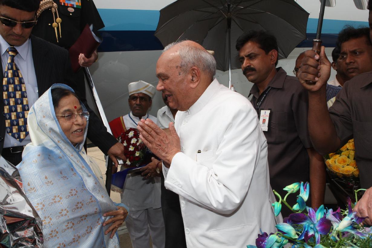 The President of India, Smt Pratibha Devisingh Patil arriving at Solapur Helipad in Maharashtra on Jan 19, 2008