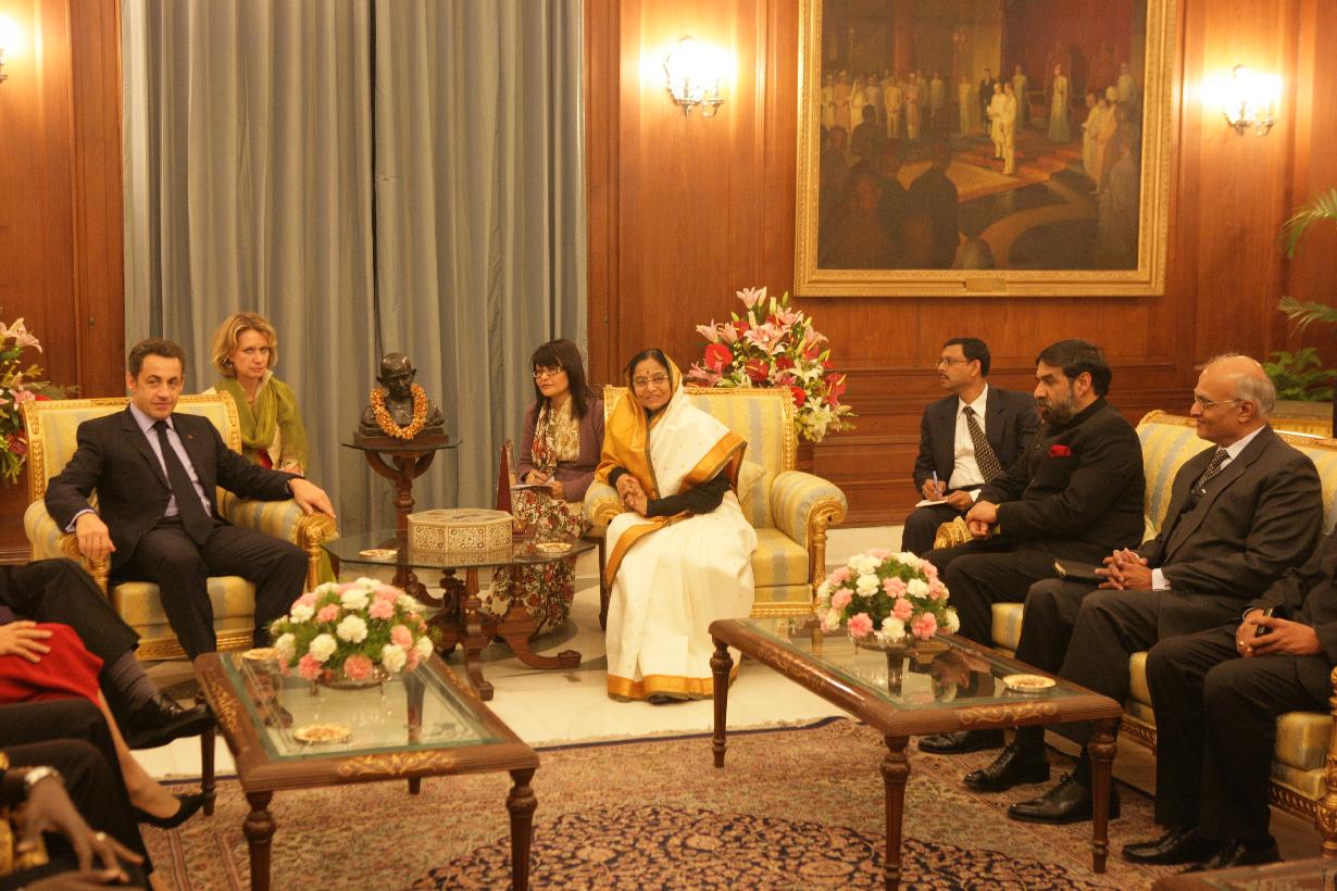 The President of France, HE Mr Nicolas Sarkozy calling on the President of India, Smt Pratibha Devisingh Patil at Rashtrapati Bhavan in New Delhi on Jan 25, 2008