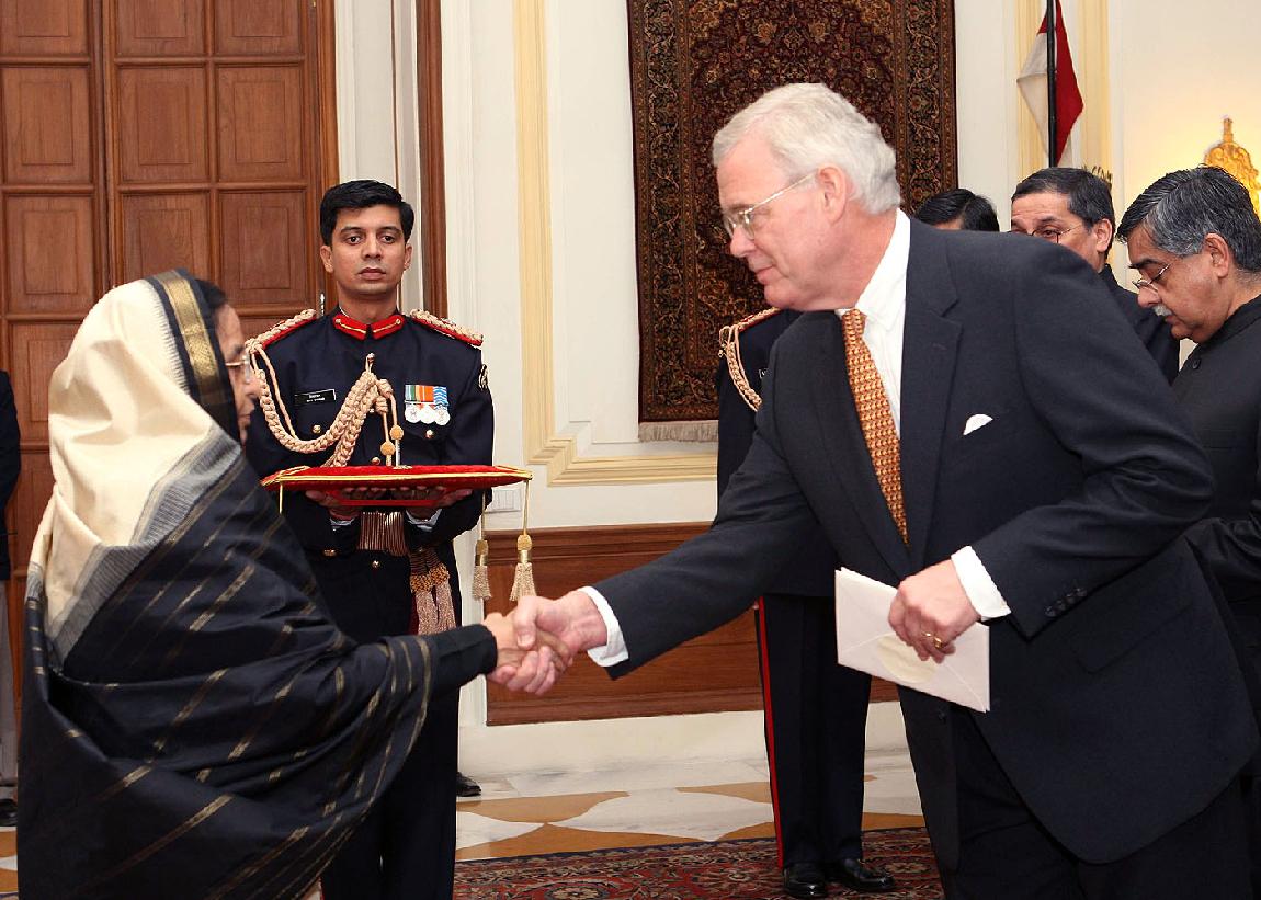 The Ambassador-Designate of China to India, HE Mr Zhang Yan presenting his credential to the President of India, Smt Pratibha Devisingh Patil at Rashtrapati Bhavan in New Delhi on Dec 18, 2011