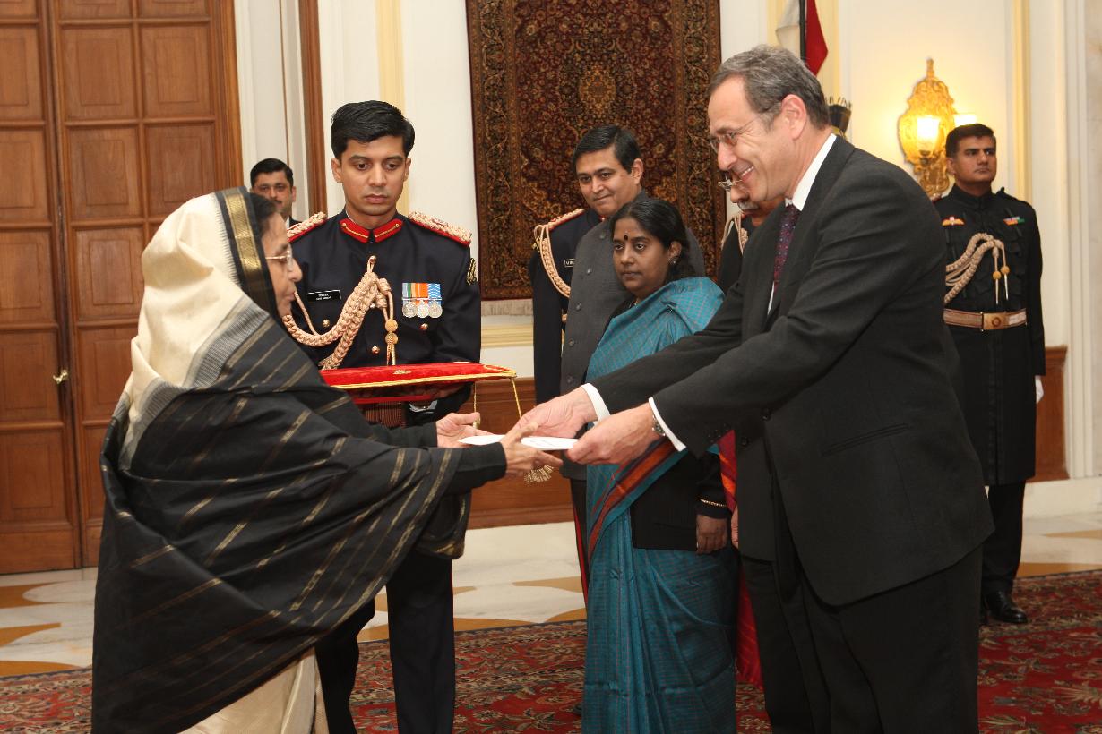 The Ambassador-Designate of Austria to India, HE Dr Ferdinand Multaschi presenting his credential to the President of India, Smt Pratibha Devisingh Patil at Rashtrapati Bhavan in New Delhi on Dec 18, 2009