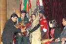 The President of India Smt Pratibha Devisingh Patil presenting the Hindi Sevi Saman Yojna Award at Rashtrapati Bhavan in New Delhi on Dec 18, 2007