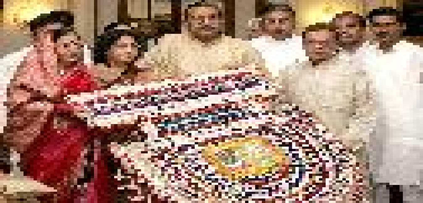 The President of India, Smt Pratibha Devisingh Patil receiving the 'Pankha' from the Committee Members of the 'Anjuman Sair-E-Gul-Faroshan' for the Phoolwalon ki Sair Festival at Yellow Drawing Room of Rashtrapati Bhavan in New Delhi on Oct 23, 2007